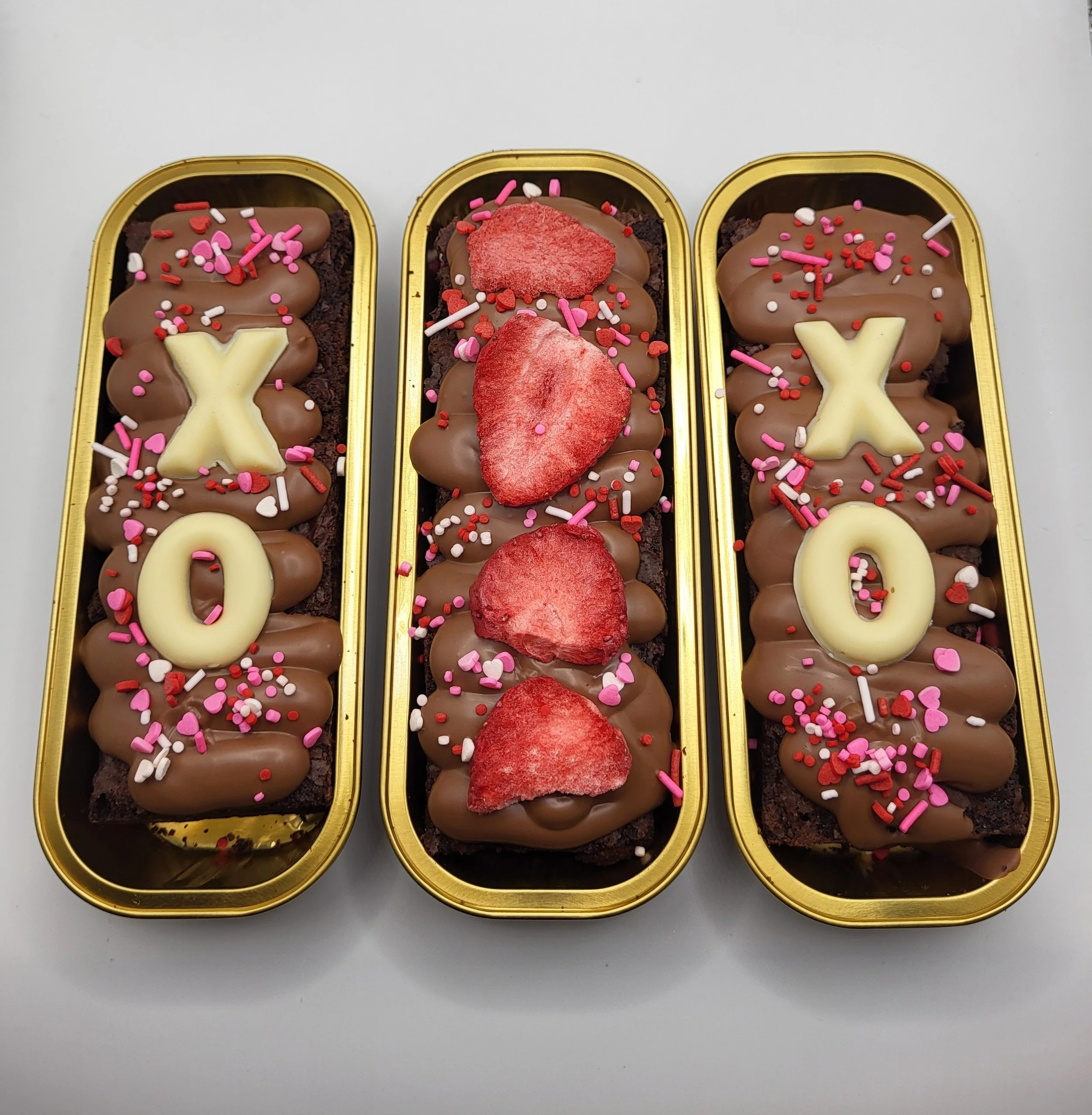 Our same decadent brownie, layered individually with Belgian chocolate and your favourite candy!