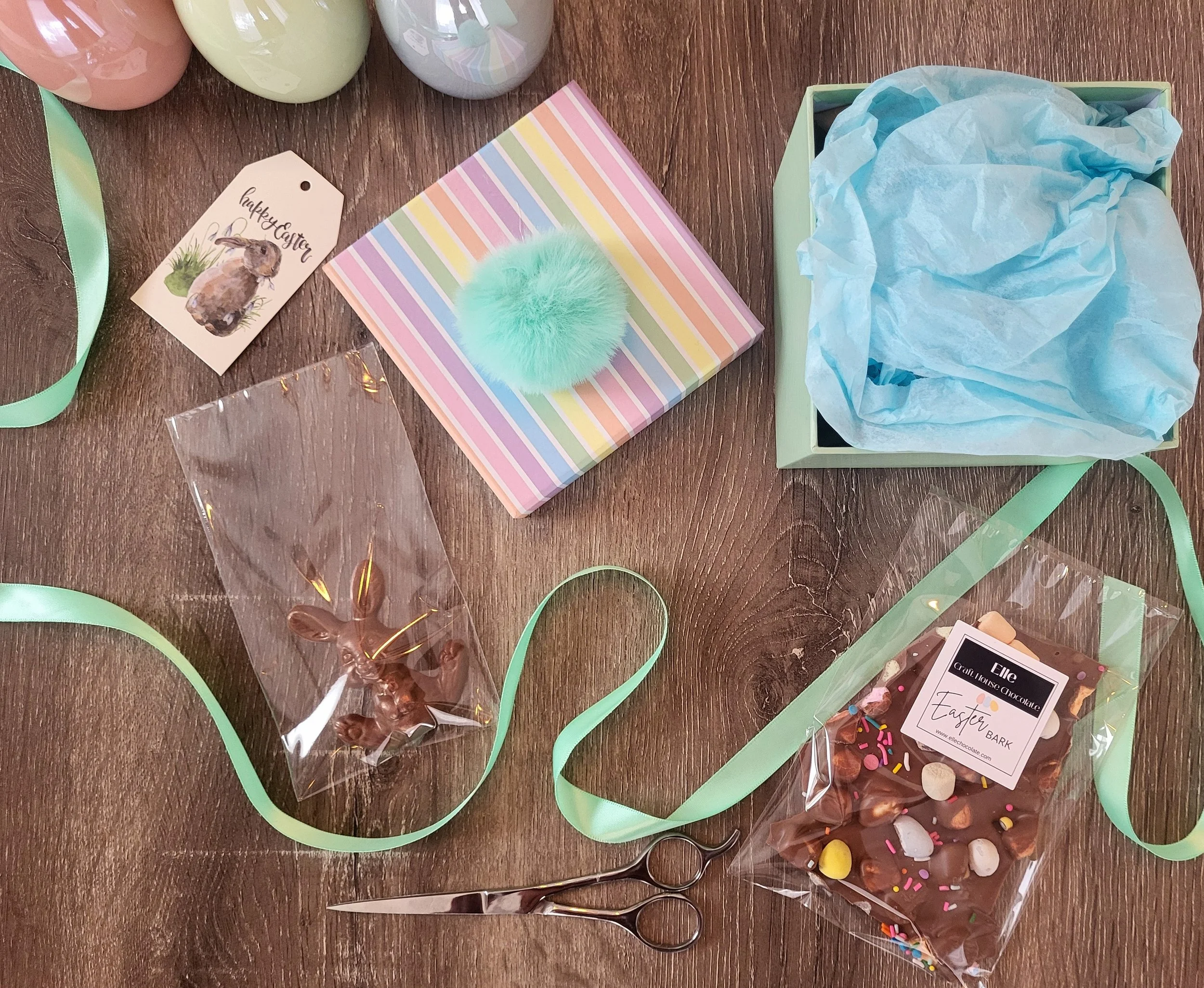 Each Basket comes with 4 products of your choice, basket, seasonal candy & bunny favour!